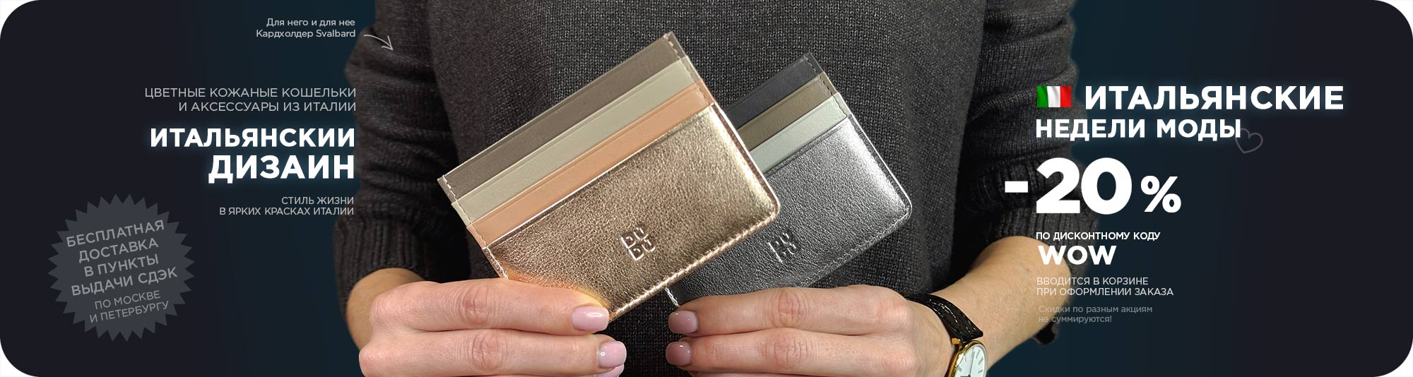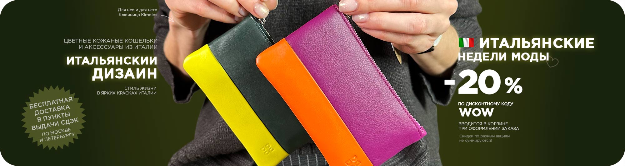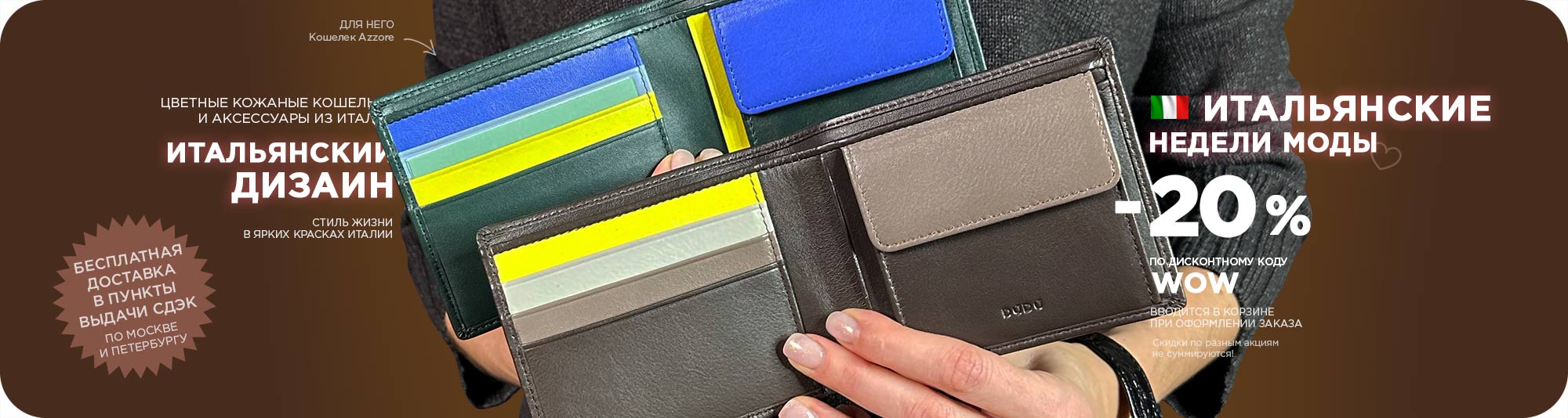 Итальянские цветные кожаные кошельки и портмоне DuDuBags давно покорили сердца покупателей по всему миру – от Испании и Великобритании до Франции, Австрии, Германии и многих других стран. На своей родине, в Италии, бренд представлен особенно широко, а его уникальный стиль и узнаваемый дизайн сделали DuDuBags выбором тысяч людей, ценящих качество и комфорт. Мы верим, что и вы откроете для себя особый характер наших аксессуаров и по достоинству оцените их неповторимое очарование.