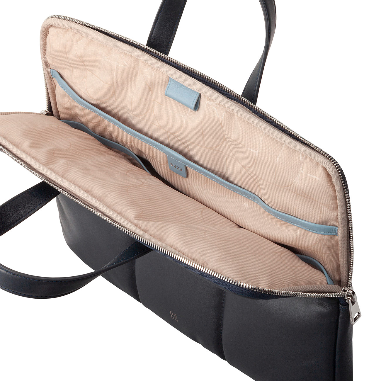 • Итальянская кожаная сумка-портфель DuDu серии Togean — это воплощение современного делового стиля, где изысканная элегантность соединяется с продуманной функциональностью. Выполненная из мягчайшей натуральной стеганой кожи Nappa, она завораживает своим дизайном, благородной текстурой и вниманием к каждой детали. Внутреннее пространство продумано до мелочей: сумка легко вмещает 14-дюймовый MacBook, планшет и все необходимые аксессуары.