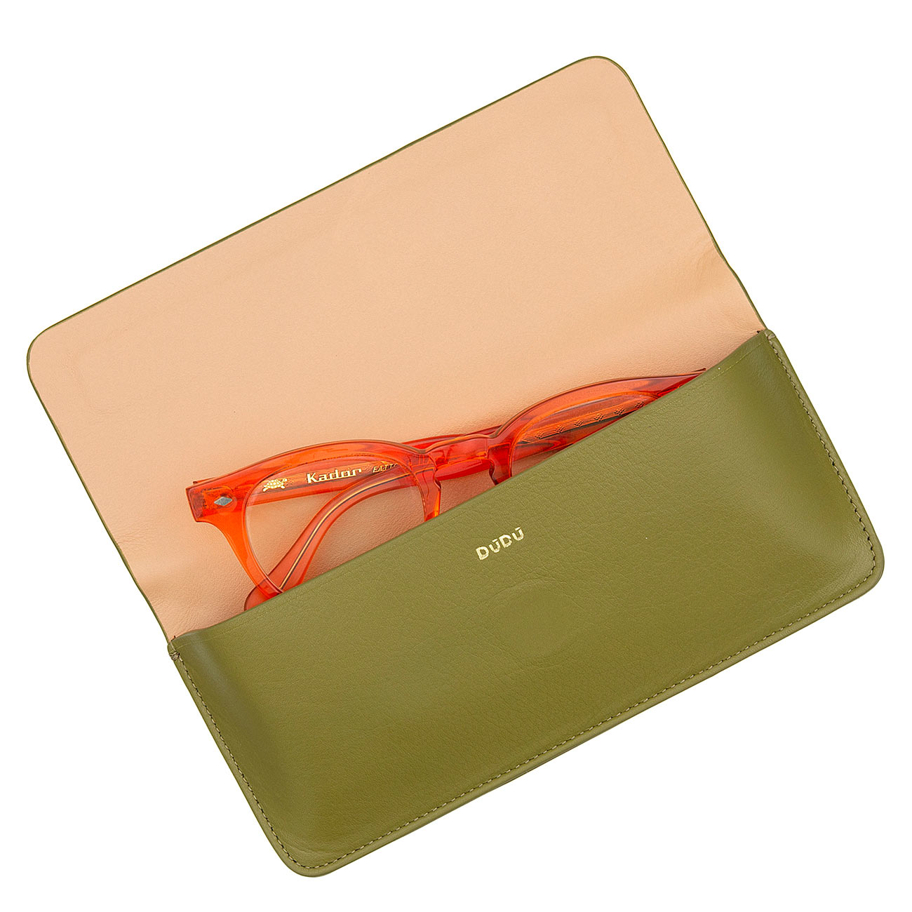 Итальянский кожаный футляр для очков DuDu серии Calais | оливково-зеленый