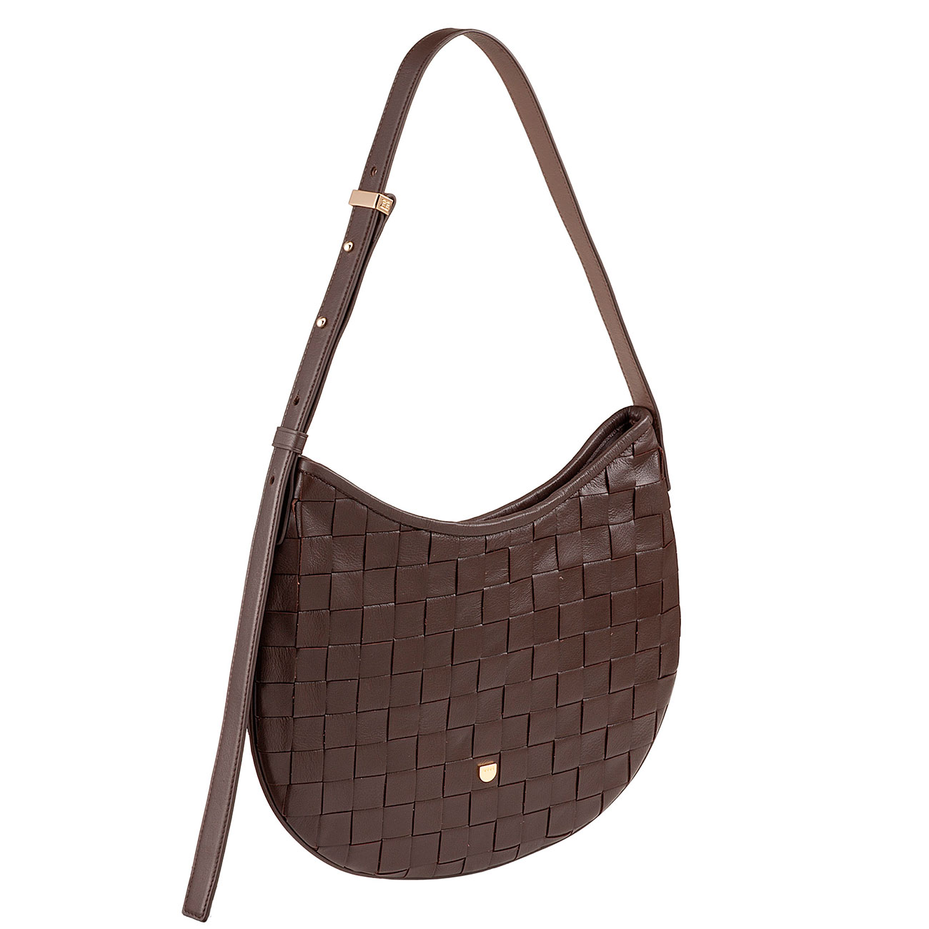 Итальянская женская наплечная кожаная сумка DuDu серии Hispani | кофейно-коричневый
