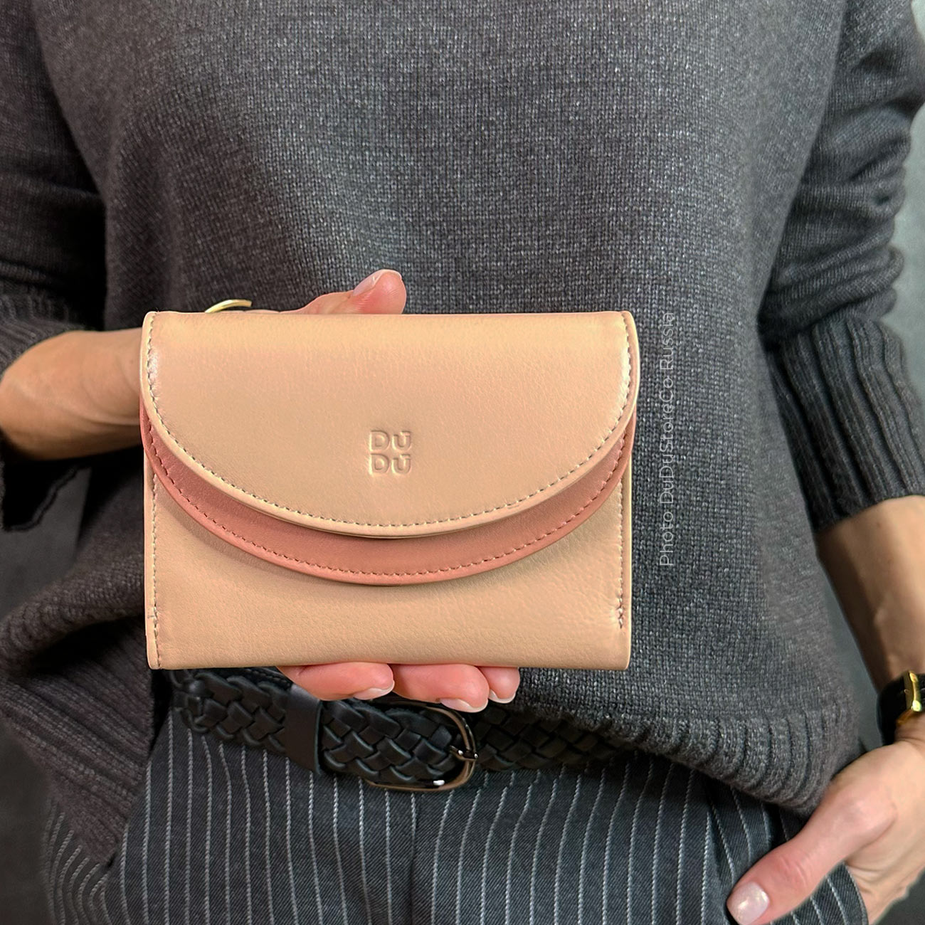 Итальянский женский кожаный кошелек DuDu серии Galapagos | пудровый