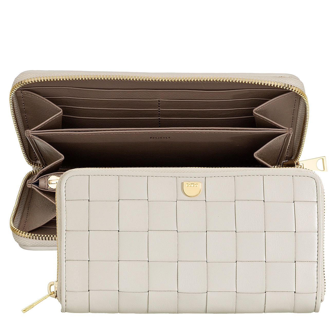 Итальянское большое кожаное портмоне на молнии DuDu серии Mauritius | жемчужный серый