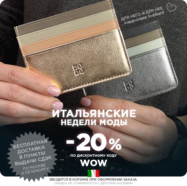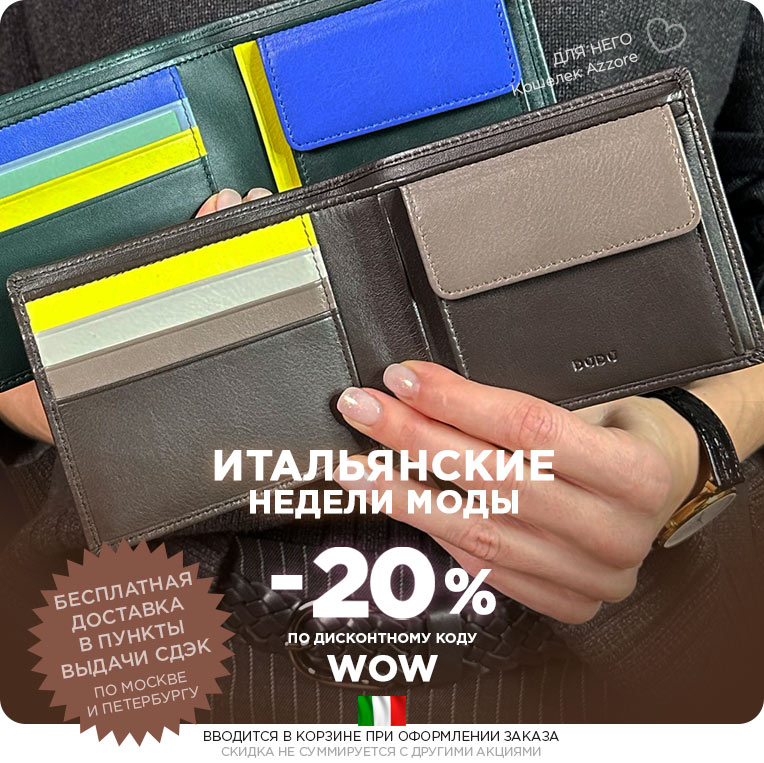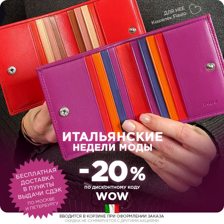 Итальянские цветные кожаные кошельки и портмоне DuDuBags давно покорили сердца покупателей по всему миру – от Испании и Великобритании до Франции, Австрии, Германии и многих других стран. На своей родине, в Италии, бренд представлен особенно широко, а его уникальный стиль и узнаваемый дизайн сделали DuDuBags выбором тысяч людей, ценящих качество и комфорт. Мы верим, что и вы откроете для себя особый характер наших аксессуаров и по достоинству оцените их неповторимое очарование.