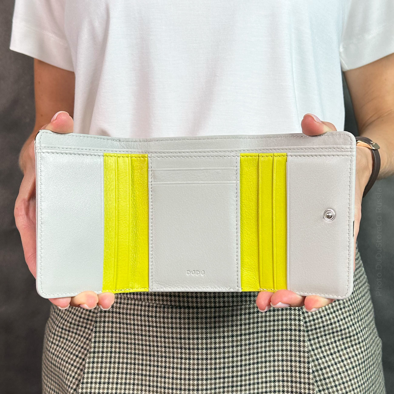 • Итальянский цветной кожаный кошелек DuDu серии Pemba – стильный женский кошелек тройного сложения, который сочетает компактный размер и удобный функционал. Всего пара движений – и просторное отделение для купюр аккуратно складывается, сохраняя наличность в полном порядке. Кожаный кошелек Pemba легко поместится в маленькую дамскую сумочку и станет незаменимым спутником для деловой женщины или молодой девушки.