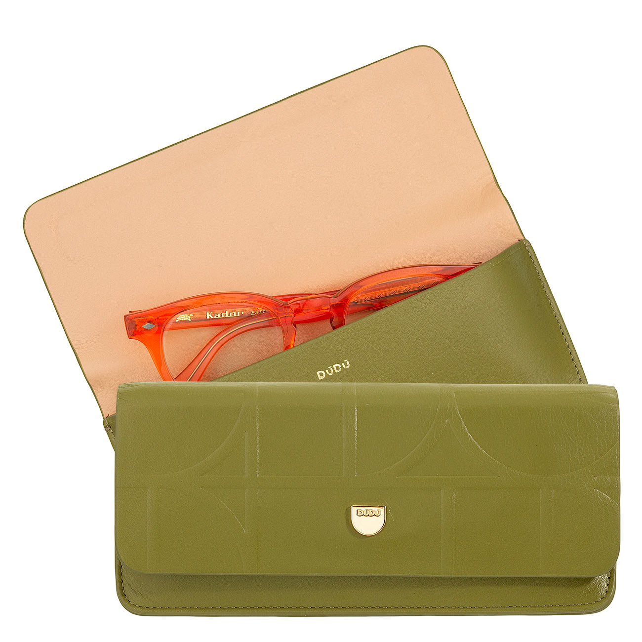 Итальянский кожаный футляр для очков DuDu серии Calais | оливково-зеленый