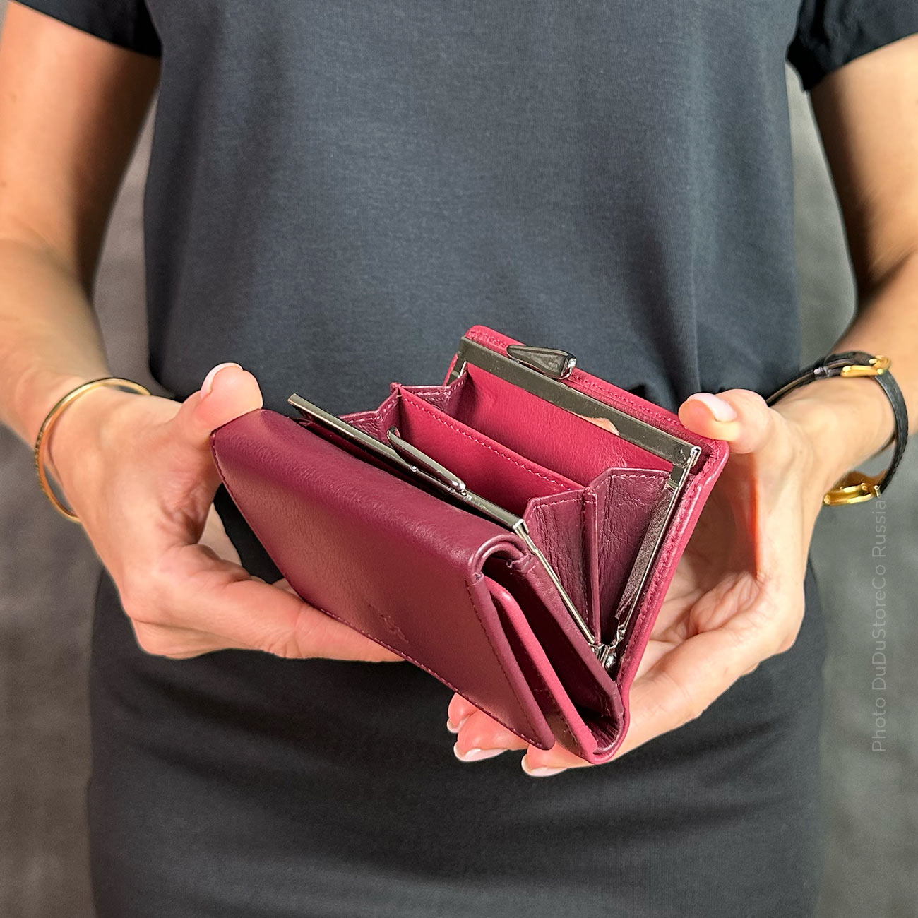 Итальянский женский кожаный кошелек DuDu серии Corsica | бордово-розовый