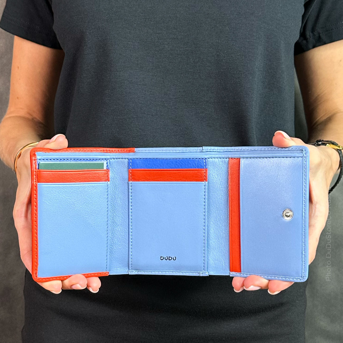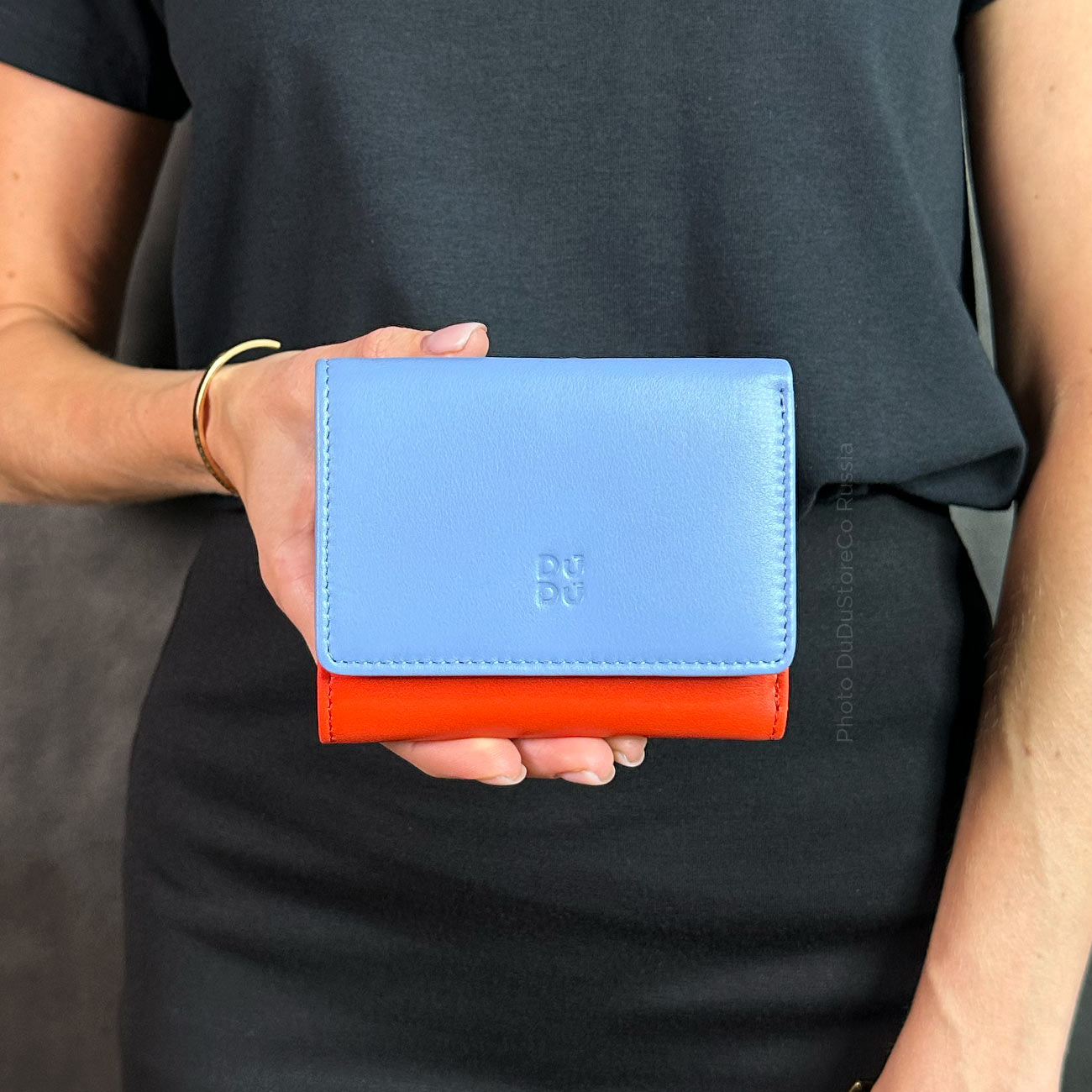 Итальянский цветной кожаный кошелек DuDu серии Corsica – это компактный и при этом вместительный женский кошелек на каждый день. Благодаря небольшому размеру и продуманной эргономике он легко помещается даже в небольшую женскую сумочку, оставаясь при этом действительно функциональным и удобным в использовании. Внутри кошелька найдётся место и для бумажных купюр, и для множества пластиковых карт. А удобный фермуар на защёлке сзади обеспечит быстрый доступ к монетам и картам. Этот кожаный кошелек станет вашим незаменимым спутником в повседневной жизни, а также в поездках и путешествиях.