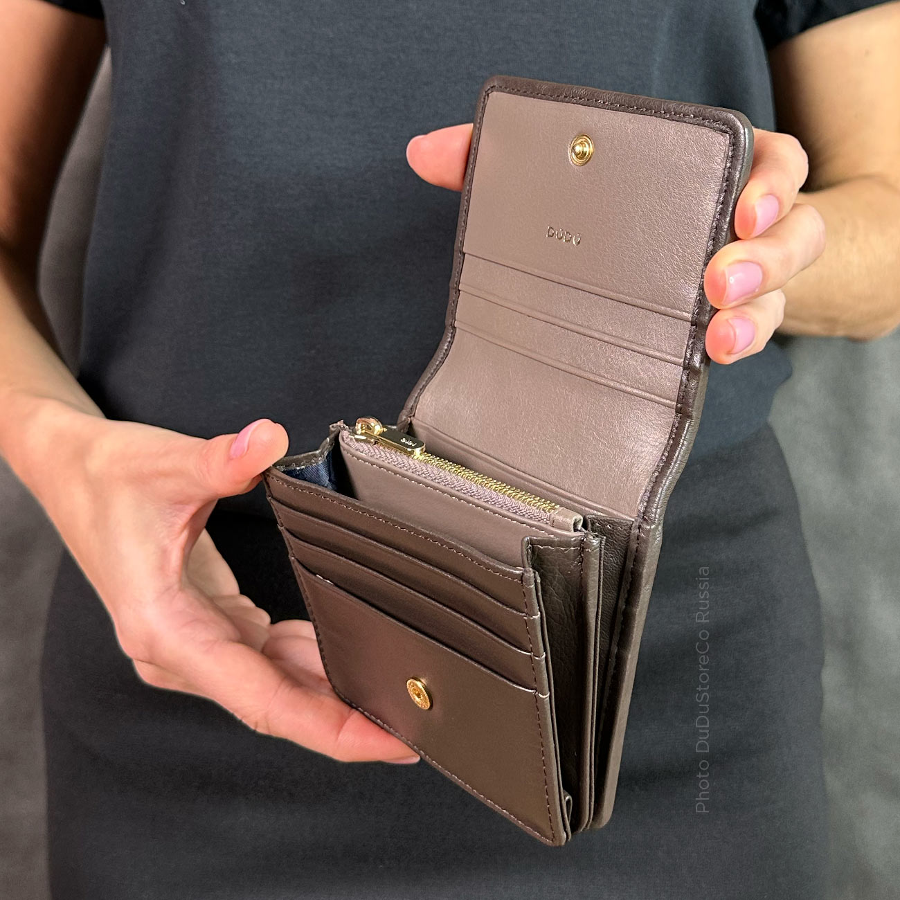 DuDuBags – итальянский бренд, который с любовью создаёт аксессуары из натуральной кожи для тех, кто ценит качество, эстетику и индивидуальность. Сумки, кошельки и мелкая кожгалантерея изготавливаются исключительно из 100% телячьей кожи Nappa – мягкая, эластичная и удивительно приятная на ощупь. Этот материал сочетает в себе прочность и нежность, благодаря чему аксессуары DuDuBags сохраняют свою красоту и форму на протяжении многих лет.