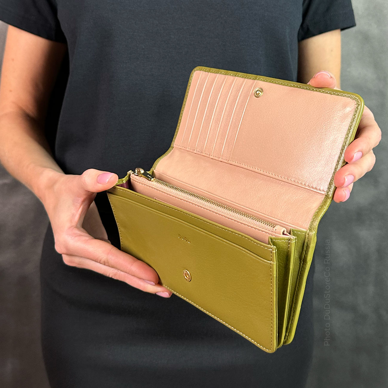 Итальянский женский кожаный кошелек DuDu серии Canarie | оливковый